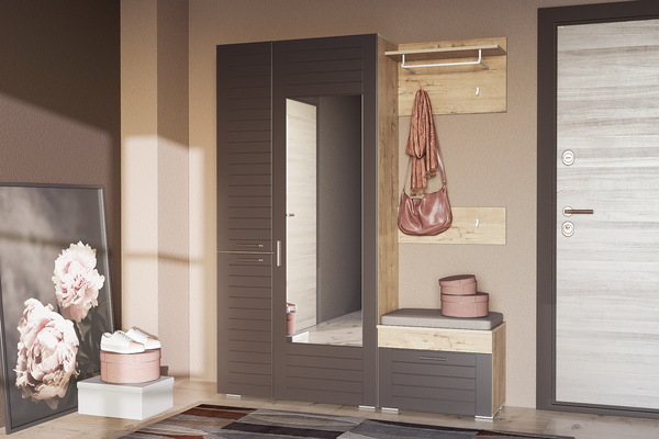 Компактная тумба Livorno НМ 040.63 совмещает в себе функции обувницы и банкетки. Модуль оснащен выдвижным ящиком для размещения в нем повседневной уличной обуви. Под откидной крышкой тумбы скрывается отсек для мелочей. В состав модуля также входит мягкий элемент, который делает процесс сборов комфортным.