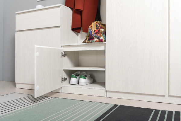 Все фасады коллекции открываются за край. Помимо лаконичного внешнего вида, отсутствие лицевой фурнитуры обеспечивает удобство использования в тесном пространстве, можно не опасаться зацепиться за ручку.