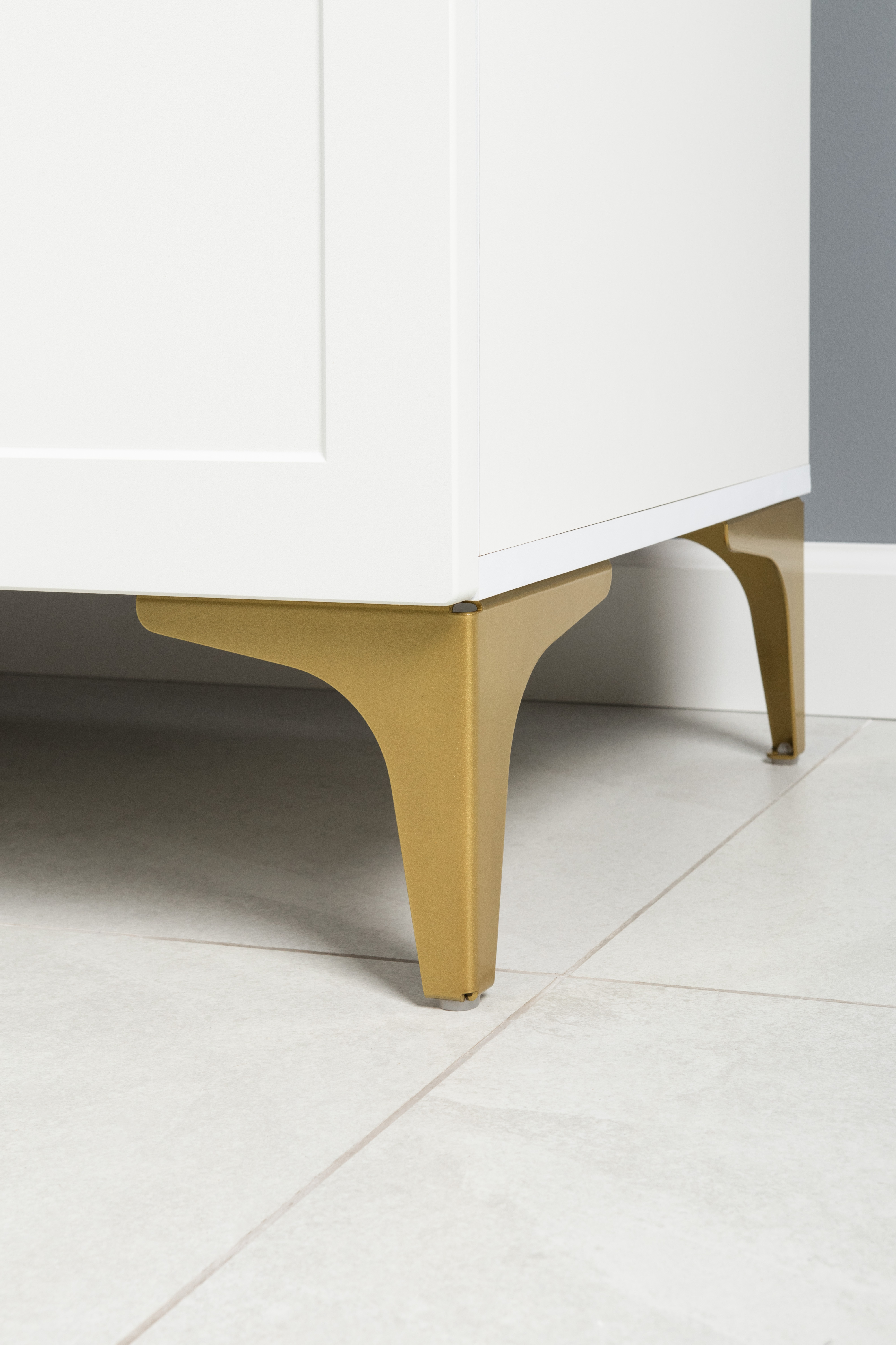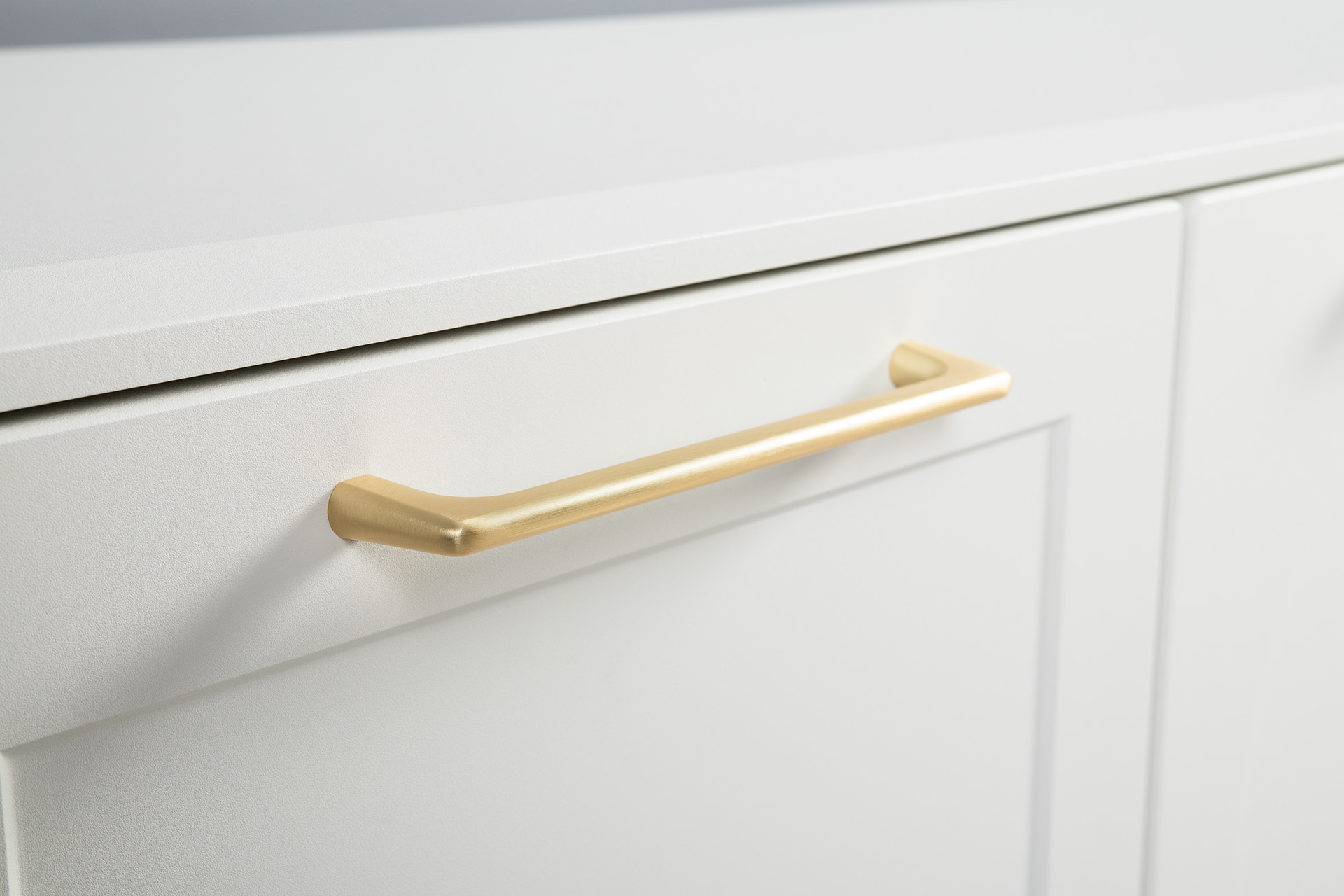 Фасады МДФ с фрезеровкой и верхняя крышка из МДФ сочетаются с металлическими ручками и опорами, создавая притягательный акцент в интерьере.