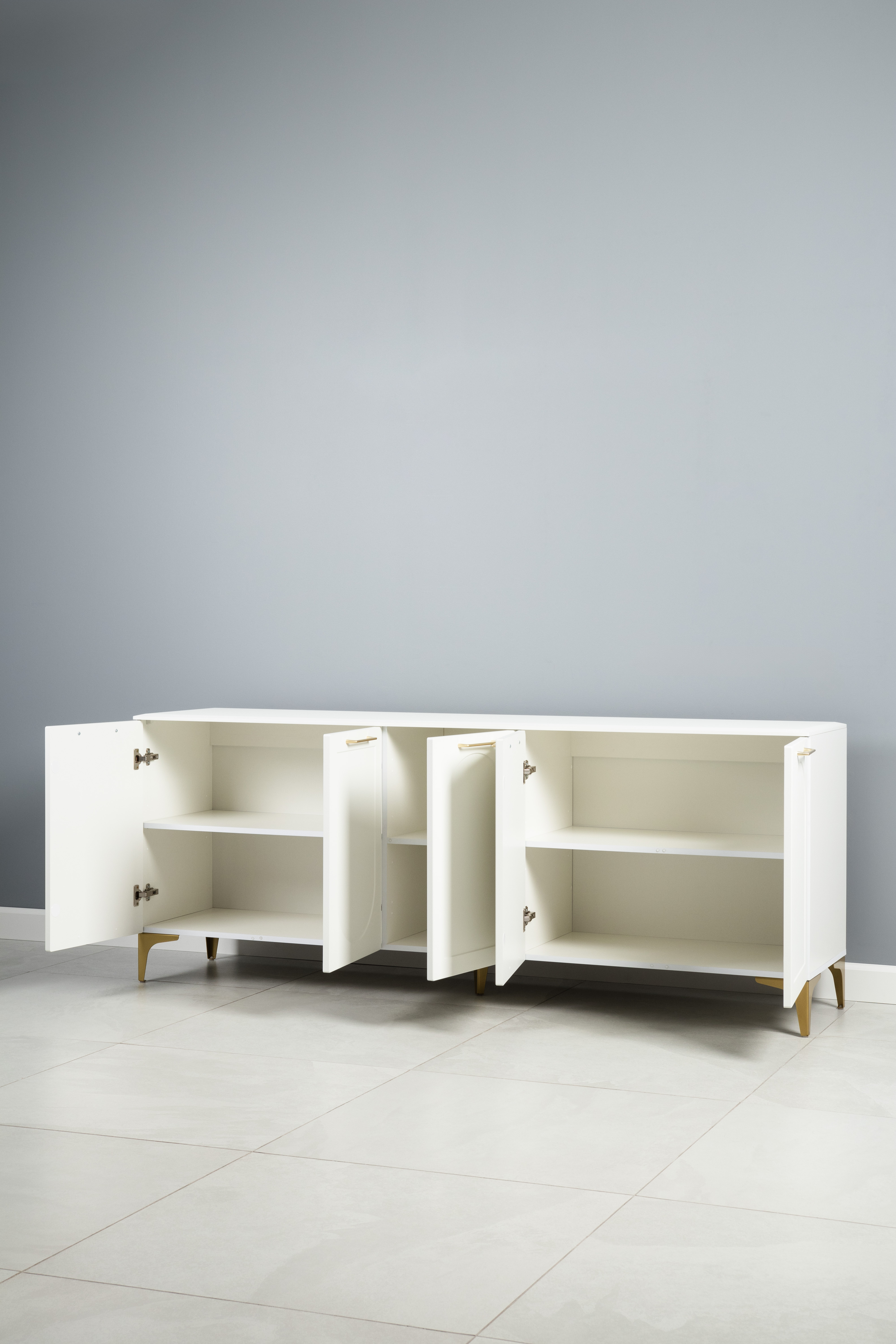 Тумба под ТВ в гостиную Спейс 13.64 белый премиум, белый глянец ПВХ