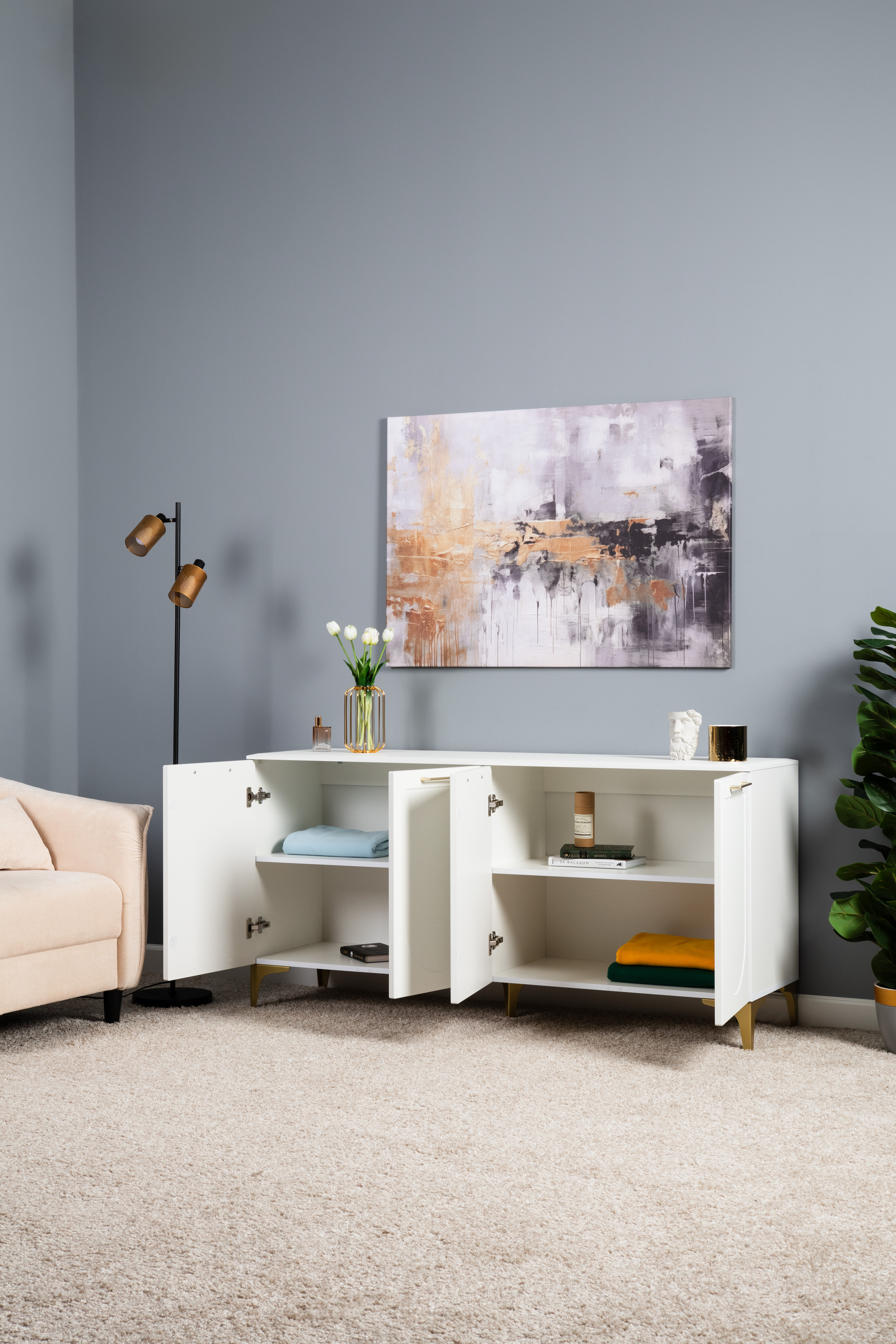 Тумба под ТВ в гостиную Бэль 10.91 белый премиум, дуб золотой CRAFT