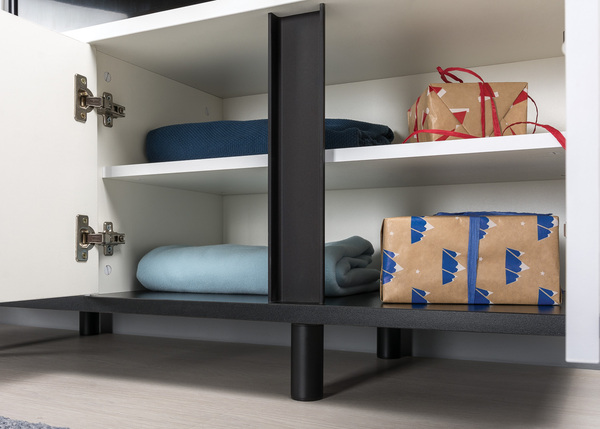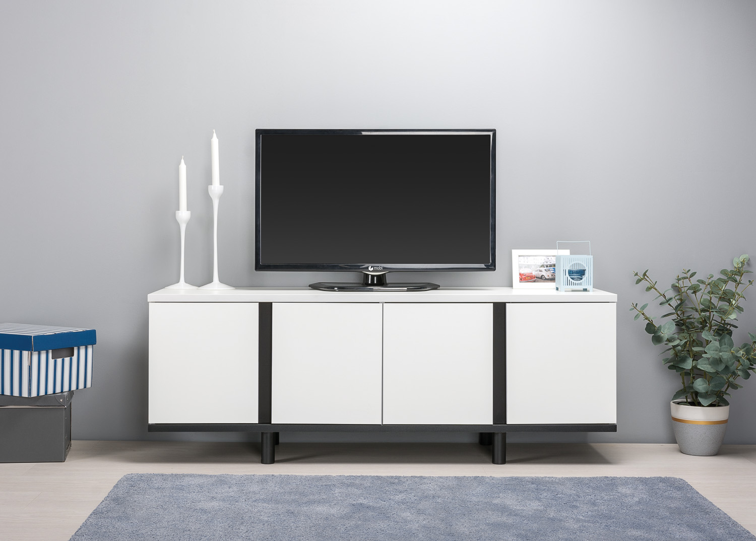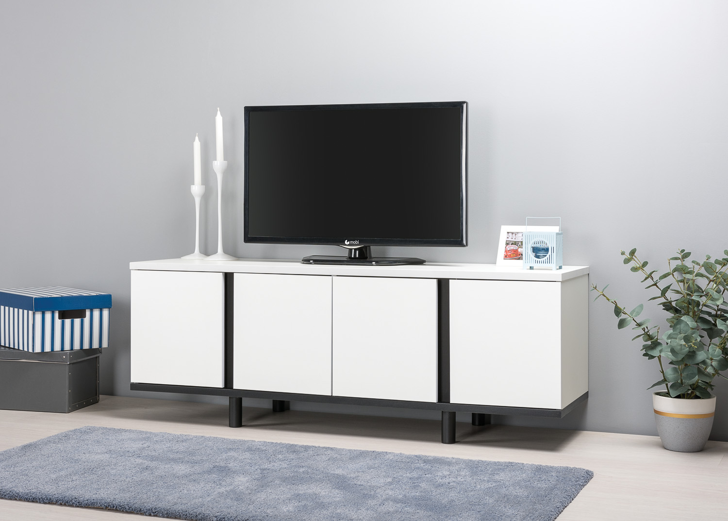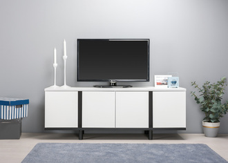Тумба под ТВ в гостиную Квадро 13.276 белый PE шагрень, черный
