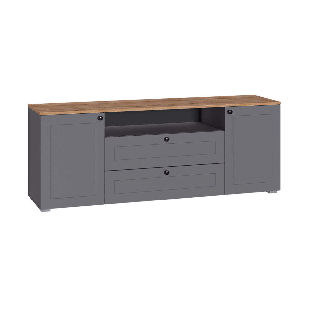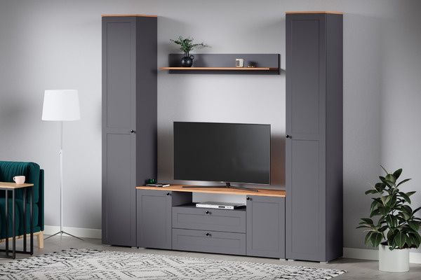 Тумба под ТВ в гостиную Остин 16.47 серый графит 0162 РЕ, дуб золотой CRAFT, графит ZB 856-2 ПВХ