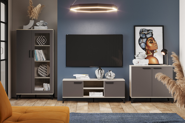 "МАРСЕЛЬ" - оригинальная коллекция мебели, которая сделает ваш интерьер современным и стильным. Благодаря высоким ножкам и длинным ручкам он привнесет в комнату нотку ретро-атмосферы. Теплый оттенок дерева сделает комнату более уютной. Мебель из коллекции может быть оформлена в современном стиле, с элементами индустриального и ретро стиля. Это идеальная коллекция для любителей нетривиальных решений в интерьере, она не перегружает, но станет отличным дополнением к оформлению помещения. Тумба ТВА "Марсель" предназначена для размещения аудио- и видеоаппаратуры, хранения вещей или предметов.