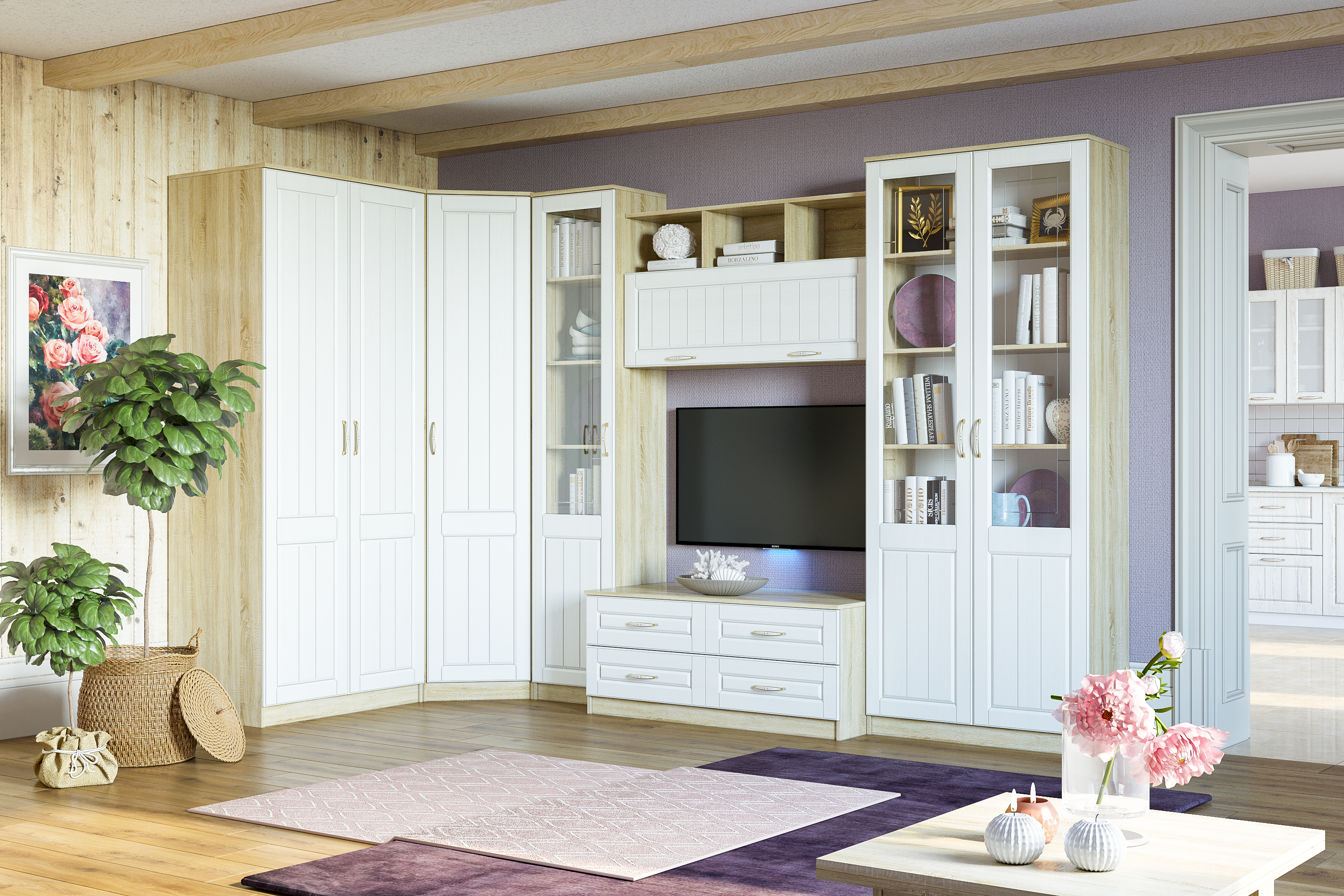 Тумба под ТВ в гостиную 13.267.03 белый PE шагрень, альберо, милк софт ПВХ
