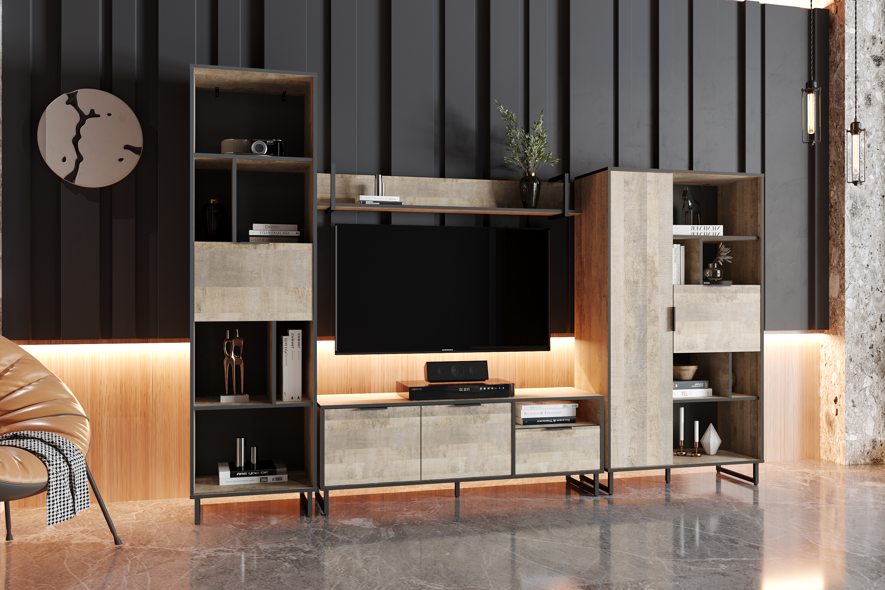 Тумба в гостиную Арчи 10.85 дуб золотой CRAFT, камень темный