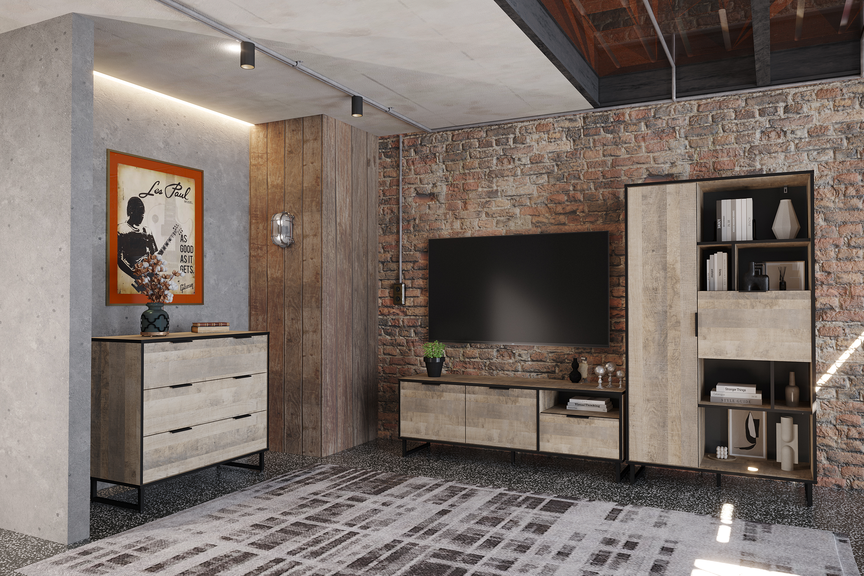Коллекция "Фолк" - современная и стильная, смелая и яркая мебель в Индустриальном стиле или стиле Лофт. Основные материалы дизайна – металл, дерево, но не глянцевые, словно сошедшие с конвейера, а несущие на себе печать времени. Главные детали в мебели – это природные несовершенства материалов. Стиль этой коллекции брутальный и монументальный создает современный интерьер, приятный глазу. Отличительной чертой и несомненным украшением является черная окантовка, создающая эффектную, выразительную линию, очерчивающую контур фасадов. Стилистически подобранные аксессуары - черные металлические ручки и цельнометаллические опоры дополняют и подчеркивают современный дизайн мебели.